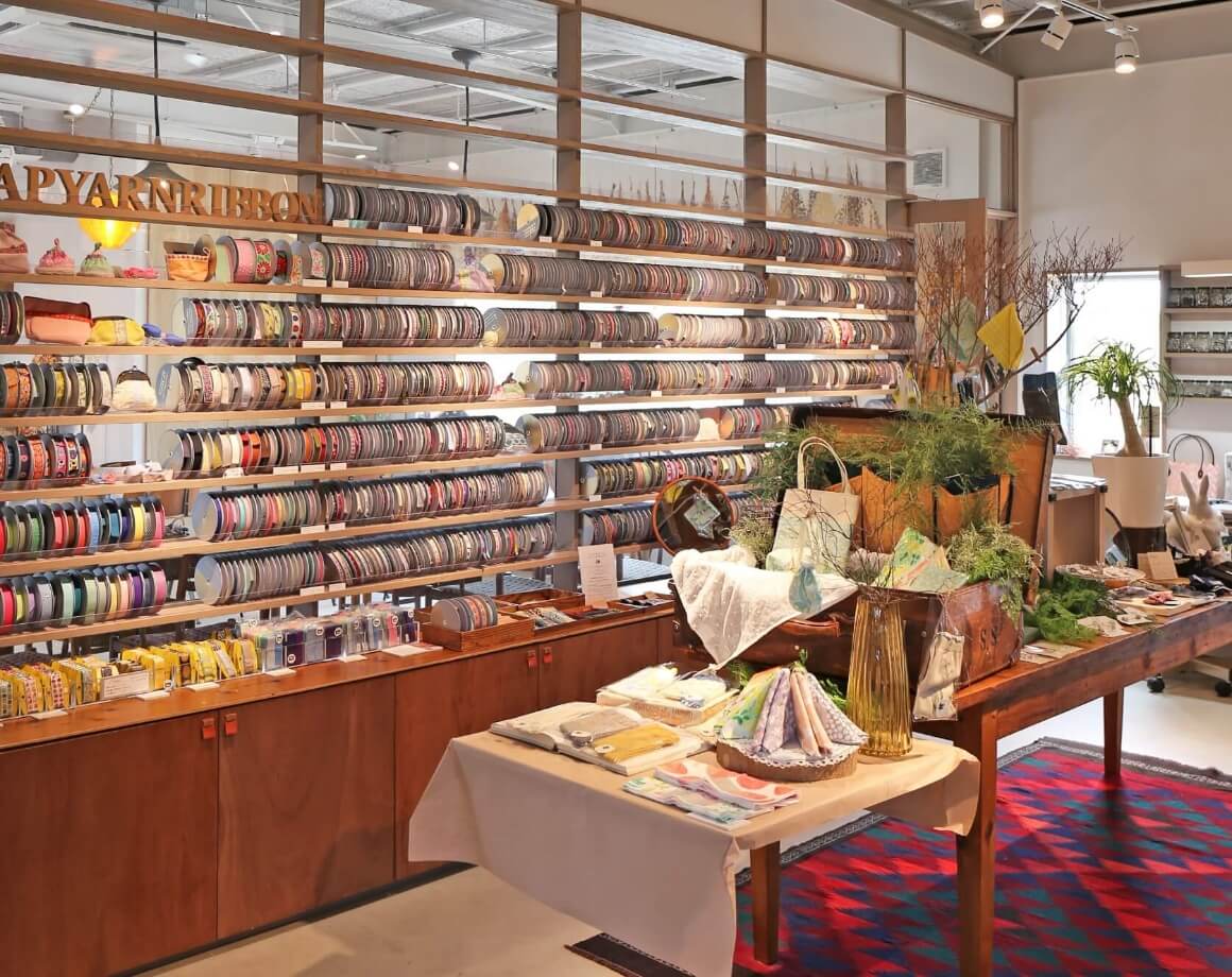 リボンとあわせて使える手芸用の部品や、初心者の方でも楽しめる手芸キットも