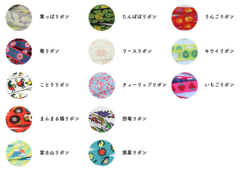 鮮やかな色なのにどこか懐かしさを感じさせるデザインと、花びらの部分と同じ色で織られた織耳が優しい風合いでとっても可愛いリボンです。