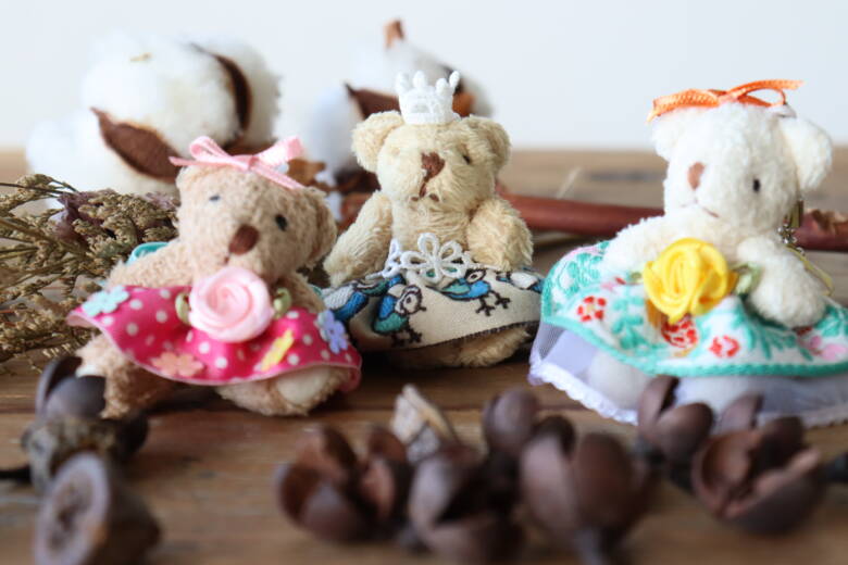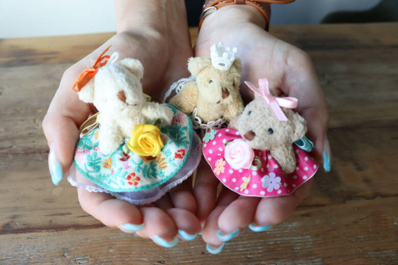 ミニミニサイズのくまさんのマスコットに、レピヤンリボンを使って可愛いスカートを作ってあげる・・・というくまさん好きにはたまらないワークショップだと思います(*'ω'*)