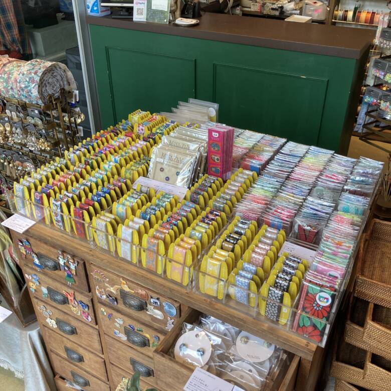その他、人気のフルーツチロルリボンをはじめとするたくさんのチロルリボン、耳飾りやバックストラップのキット、MISUZUYA様コラボのリボンのボタンなど、たくさんお待ちします✨