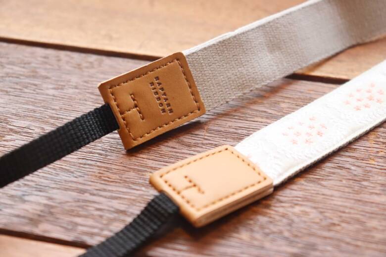 どちらのデザインもレピヤンリボンのこだわりのカメラストラップです。
