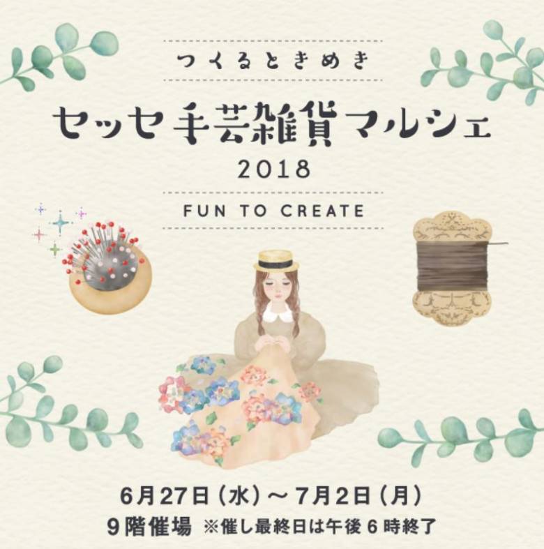 阪急うめだ本店で行われる、セッセ手芸雑貨マルシェ2018に、6/30(土)~7/2(月)の三日間参加させて頂きます!