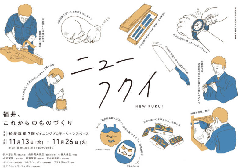 文化庁と北陸三県が協力し、北陸の工芸の魅力を国内外へ発信する国際北陸工芸サミット事業の一環として、工芸の未来を担う福井の若手中堅職人等による企画展、それが「ニューフクイ」。