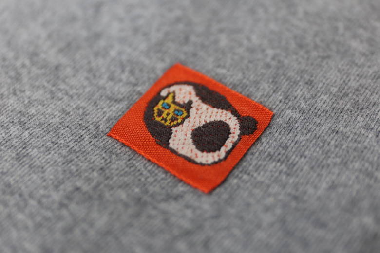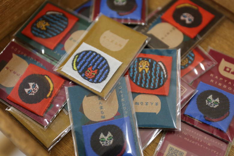 まんまる猫リボンで作った、チロルワッペンで、リボンの裏には、アイロン接着できるテープがあらかじめ付いているので、縫製いらずの簡単取りつけになっています。