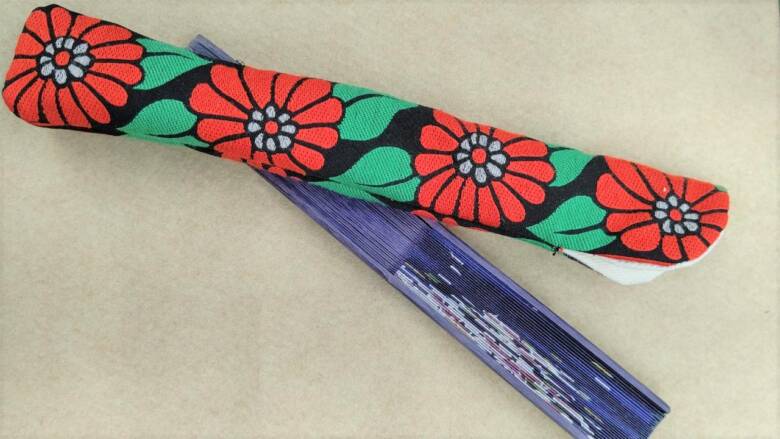 ミニ帯チロル/ガーベラリボン/53mm/ブラックを使用した扇子ケース