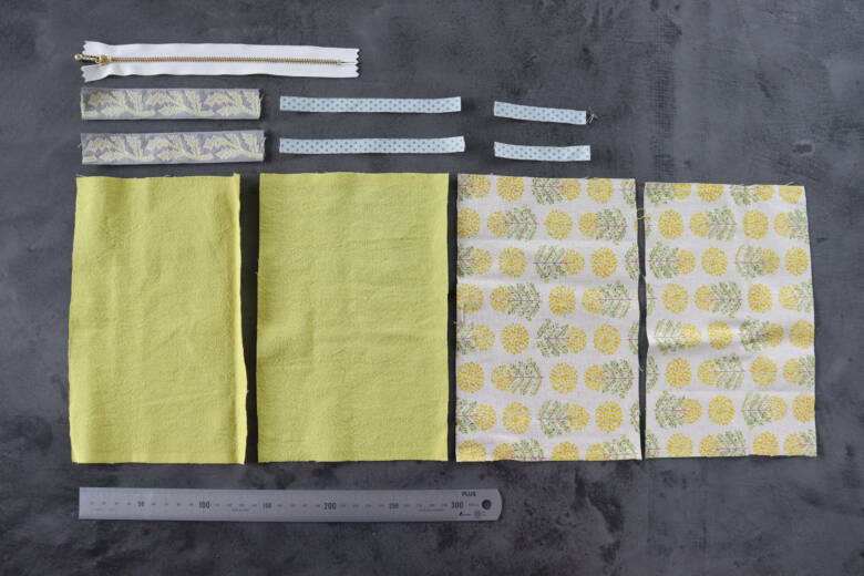 まずは、表生地・内生地・チロルリボン・リバーシブルチロルを寸法通り裁断します。