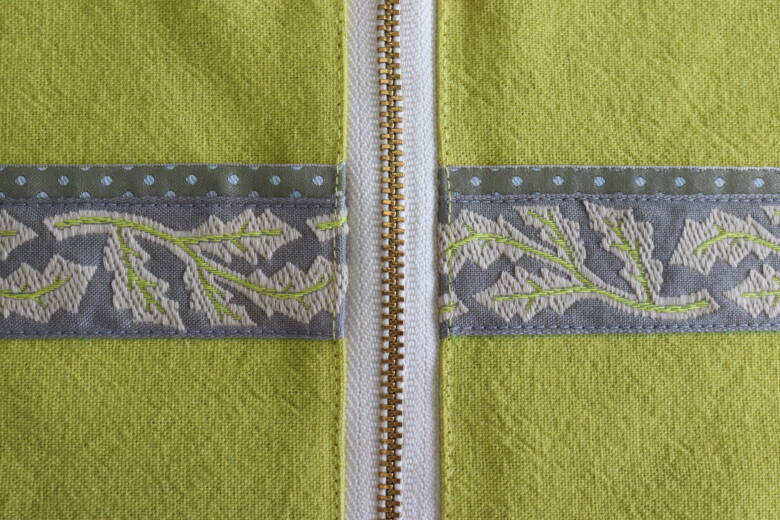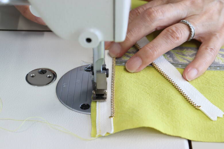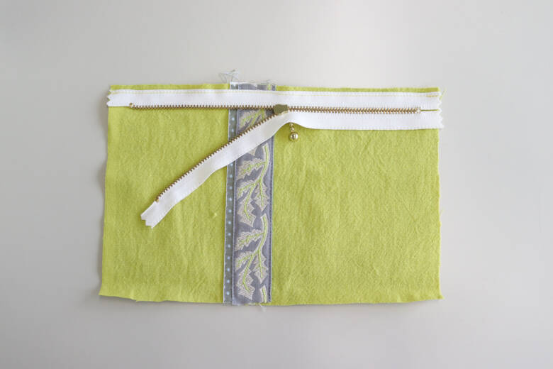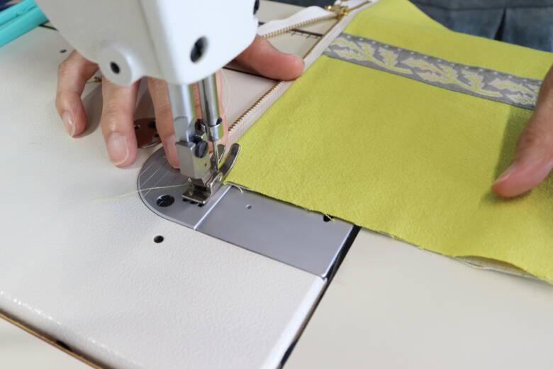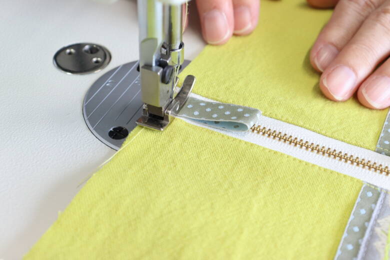 もう1枚の生地も同じ要領でファスナーに縫い付けます。