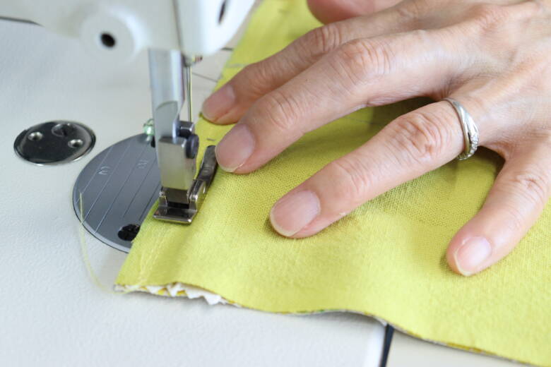 表生地側から、先程縫ったラインの2㎜内側を縫います。