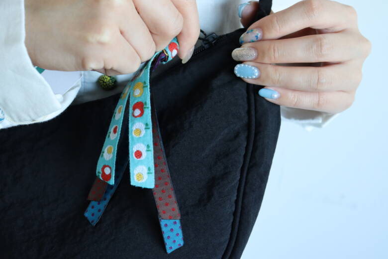 ①ナスカンにリボンを通す