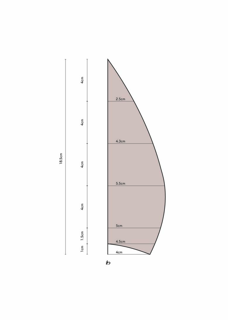 まず、型紙を作ります。写真の型紙の寸法は頭囲が51㎝となっています。まず使う方の頭囲を図ってから始めましょう。写真の寸法を参考に型紙の寸法を調整してくださいね。