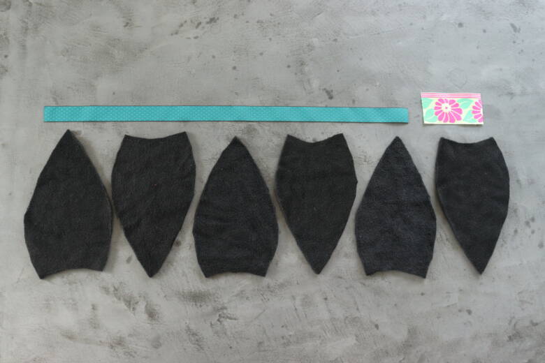 フリース生地に型紙を置きチャコペンで印を付け、1㎝の縫い代を付けてカットします。生地に方向性がある場合は6枚全て同じ方向でカットします。