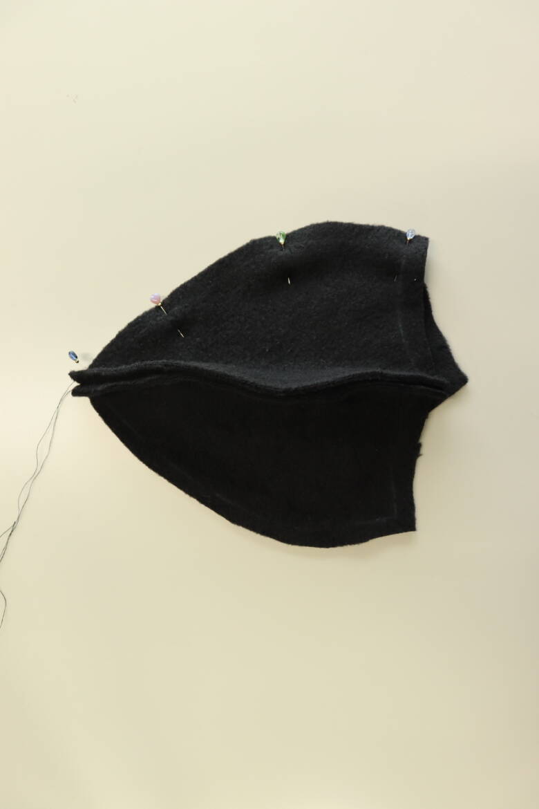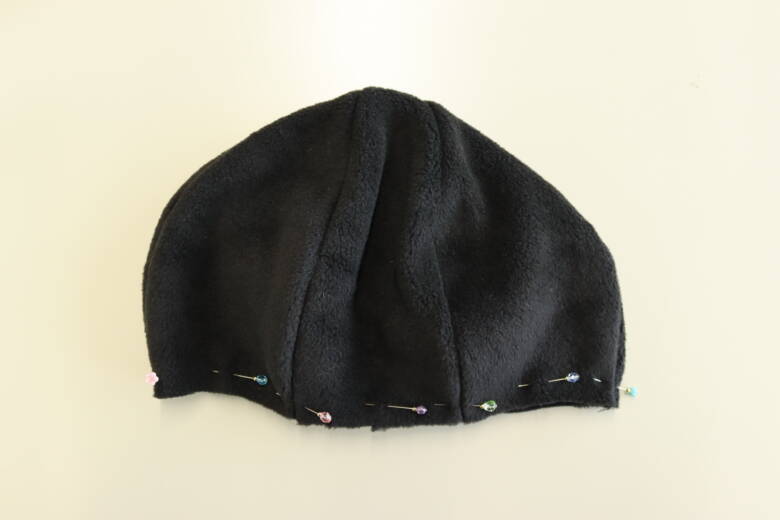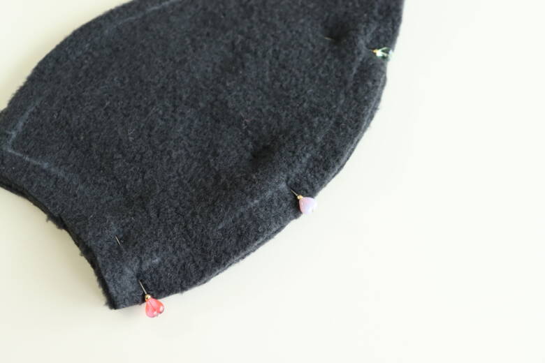 帽子の下の部分に端から1㎝のところに待ち針を止めて目印を付けておきます。