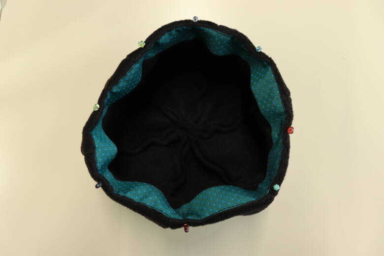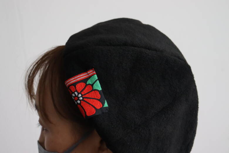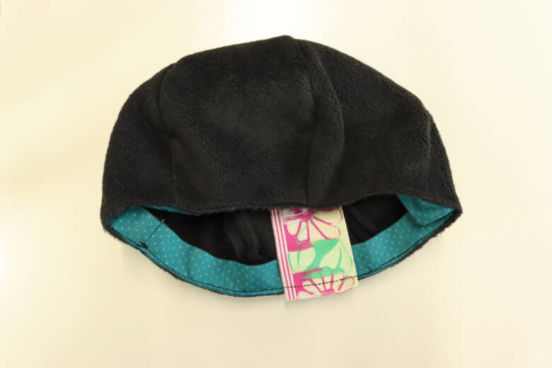 冬の生地のフリース生地を使ったのでとっても暖かいです。フリース生地はほつれないので端にロックミシンを掛けたり、裏地を付けなくてもいいので楽チンですよ。