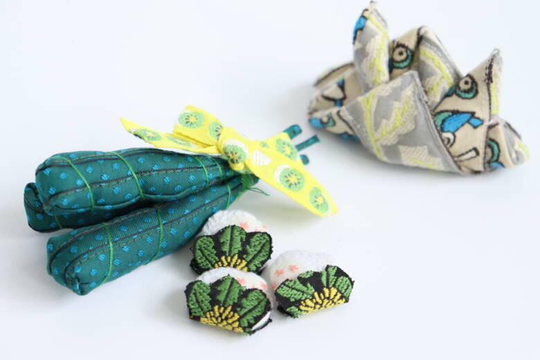 男子の健やかな成長を願って、レピヤンリボンのチロルリボンで兜やちまき、柏餅などを作ってみました。