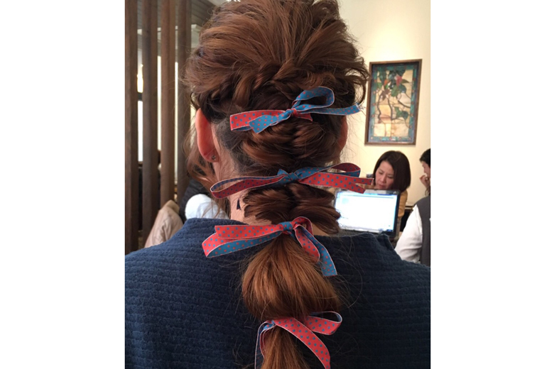 社員の女の子たちの、チロルリボンのヘアーアレンジがとってもかわいかったので、写真をアップしますね。