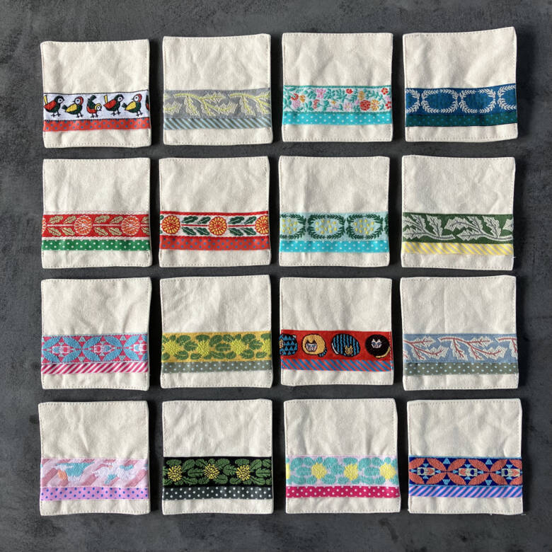 リボンの柄の組み合わせを考えるのが楽しいコースターです🌟ぜひ、作ってみてくださいね!