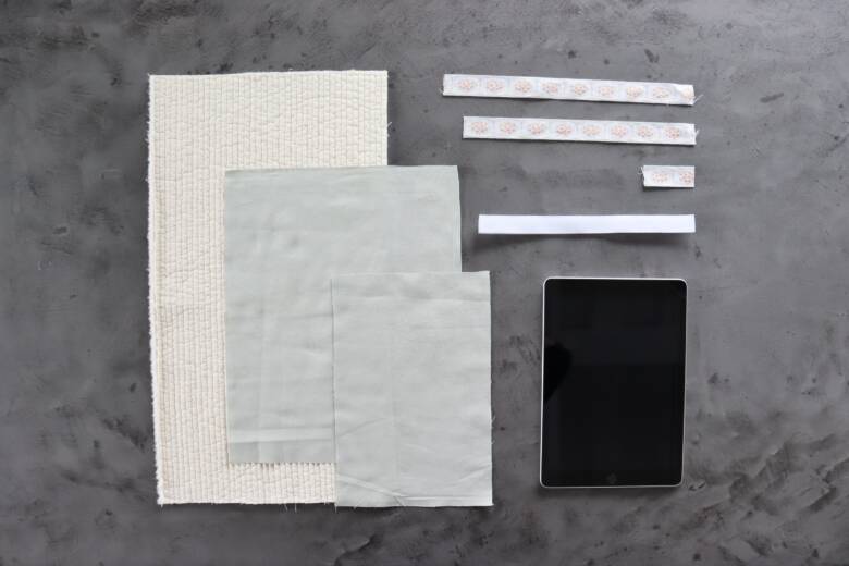 【タブレットケースの作り方】チロルリボンとヌビ生地のケース