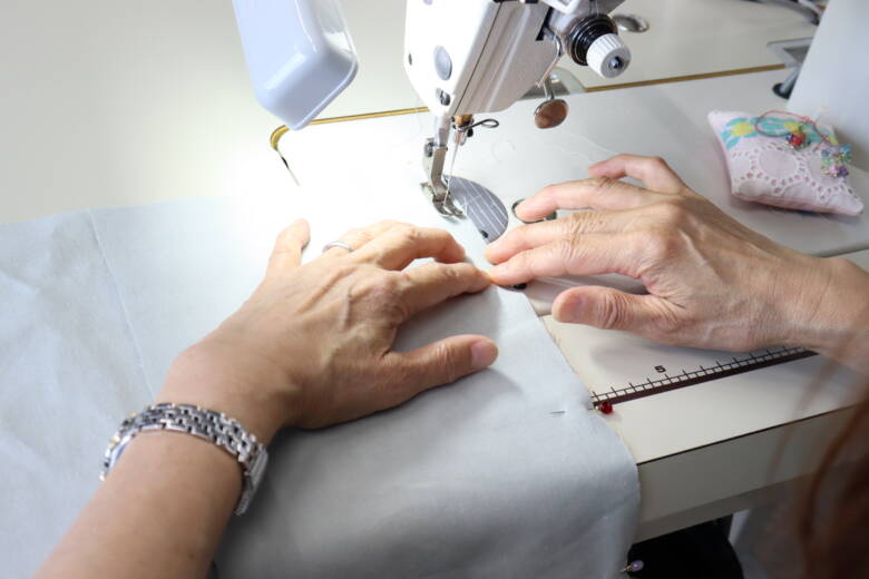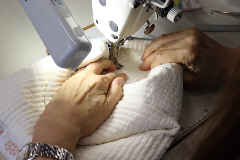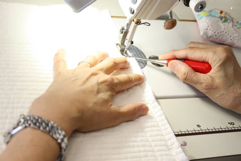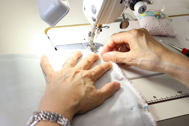 返し口はミシンで閉じます。