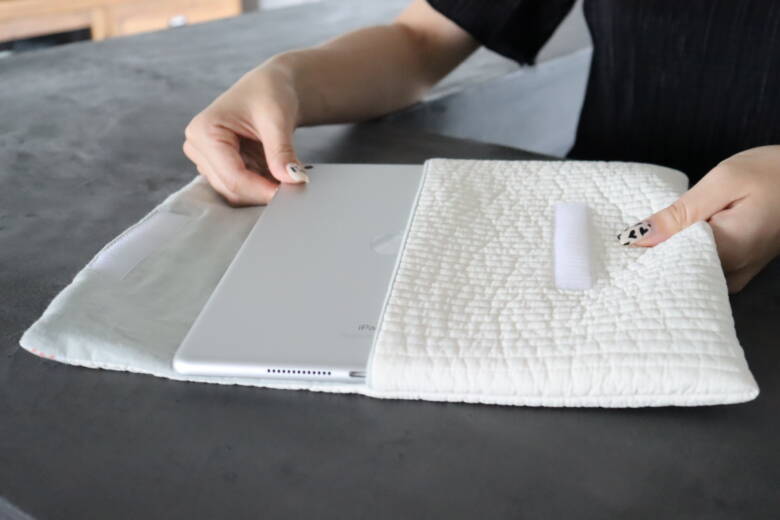 タブレットケースの出来上がりです。少し難しい部分がありましたが、縫い代がきれいに隠れるのですっきりしたケースになると思います。