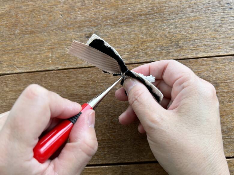 あらかじめ、りぼんの端は炙っておいてくださいね。