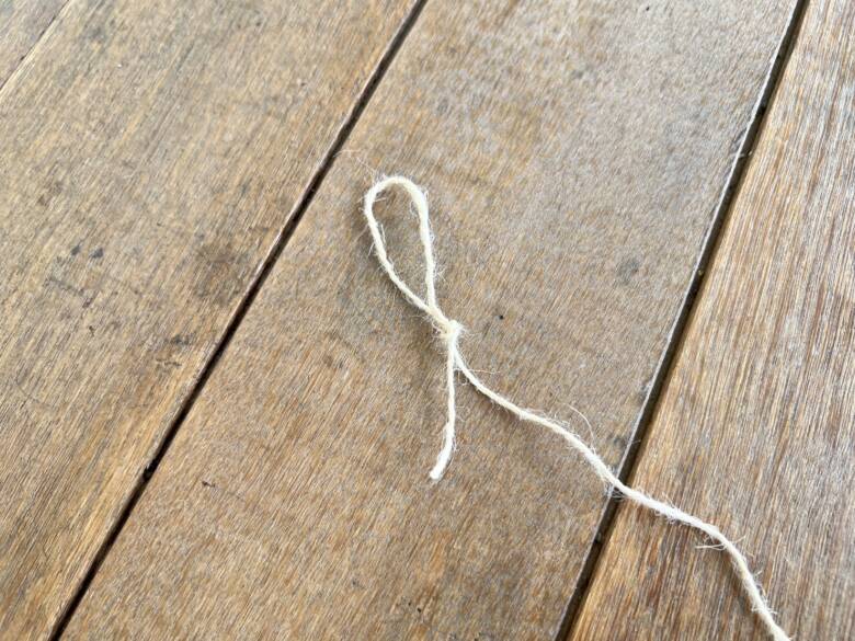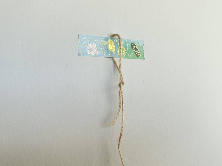 ①吊るせるように、麻紐を輪っか状にして結んでおきます。