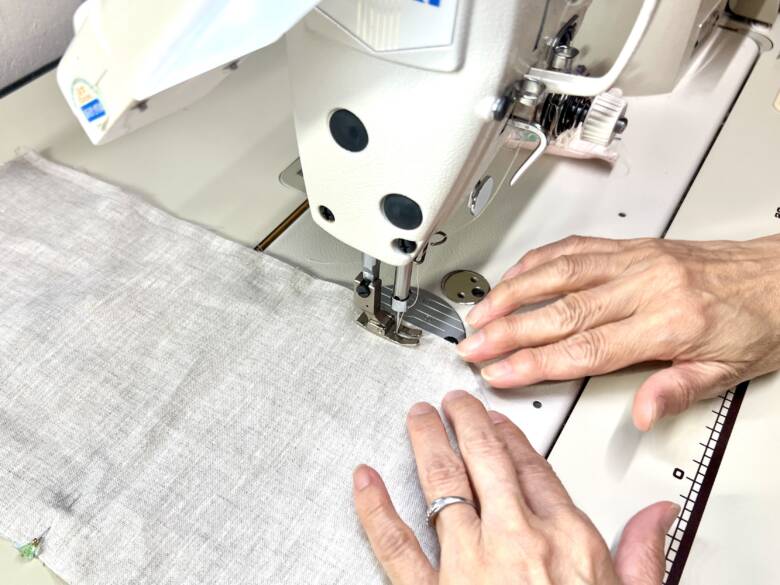 中表にしたまま、1㎝の縫い代で周りを縫います。