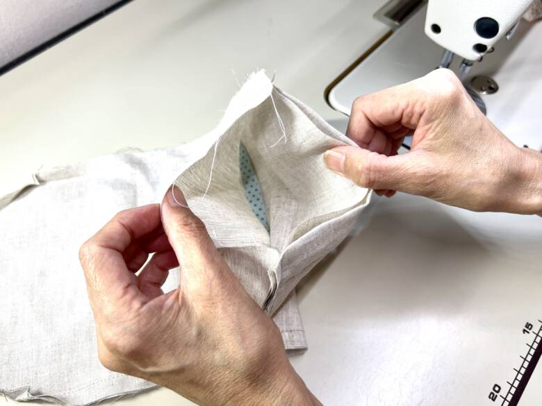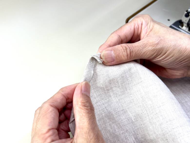角部分を先に曲げておくと、角がきれいに出ますよ。(ひっくり返し口はそのままにしておきます)