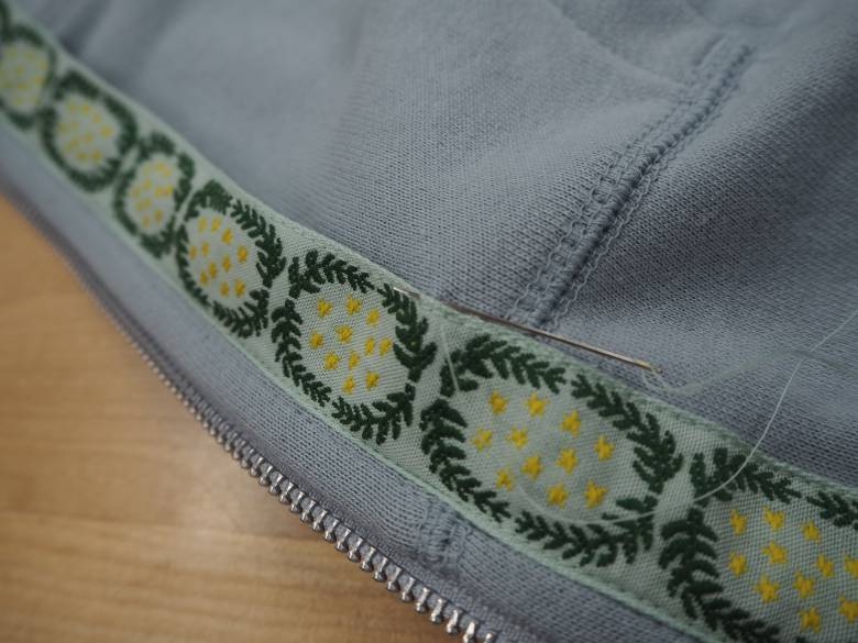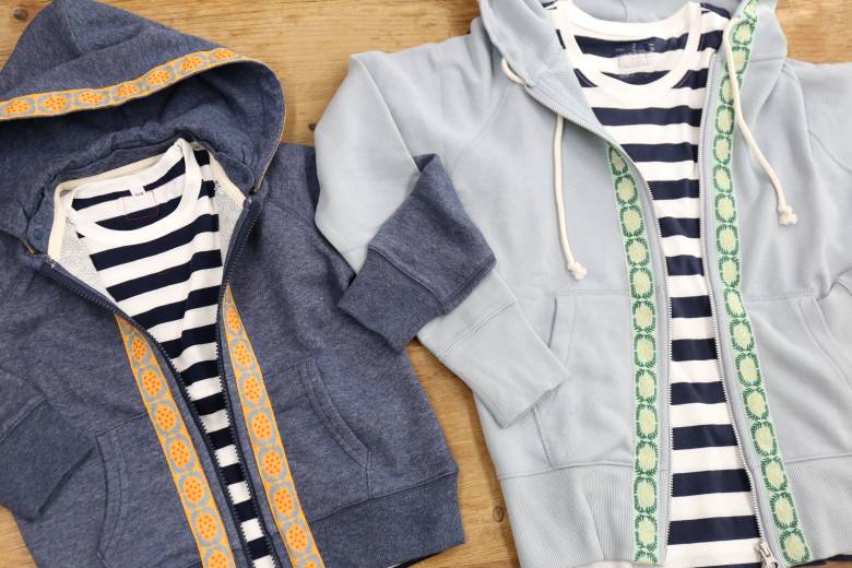 さて今回は、既製品の無印良品のパーカーとTシャツにチロルリボンを付けてみました。