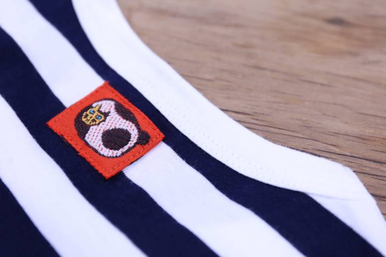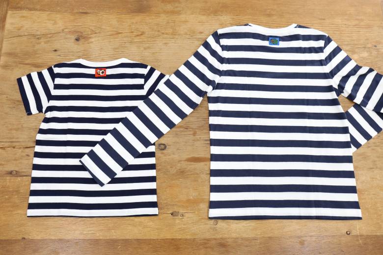 ボーダーTシャツには、まんまる猫のチロルリボンを1匹だけワッペン風に付けてみました。