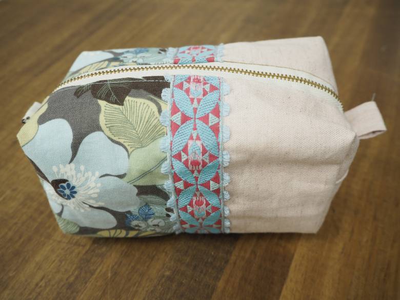 ハタフェスに向けて、リボン工場のスタッフが新作チューリップ柄チロルリボンを使ってサンプルのポーチを作ってくれましたよ。
