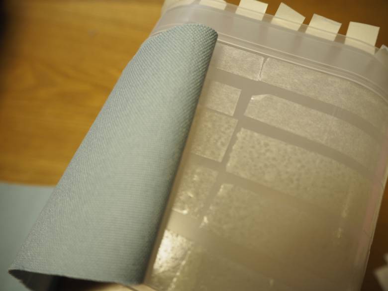 テープの剥離シートを剥がしながら布を貼っていきます。