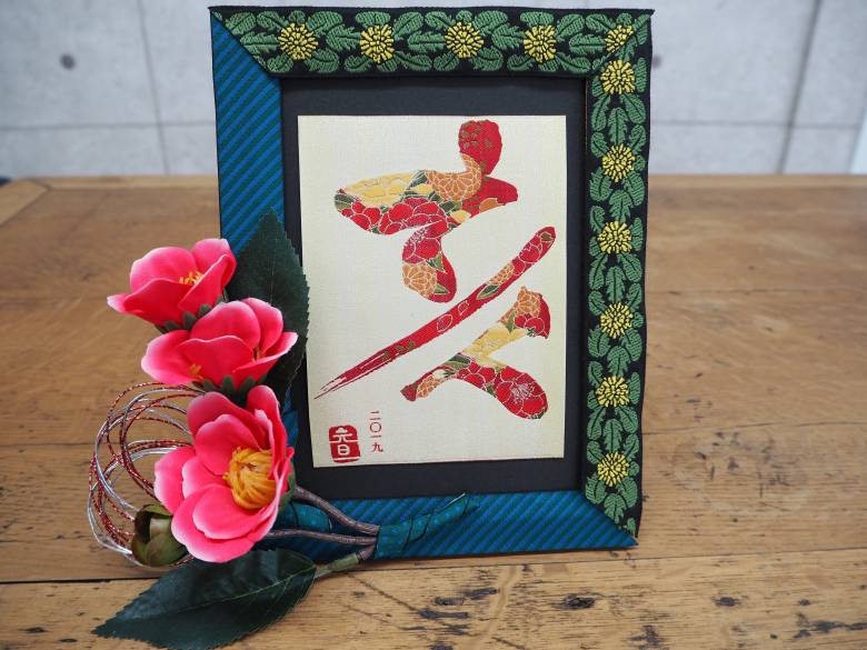 会社の年賀状はレピア織で織られています。毎年、デザインは社員から募集したものを全社員で投票し「1位」に