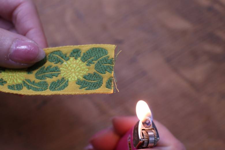 切り口をライターで軽くあぶってほつれにくくすると、この後がやりやすくなります。