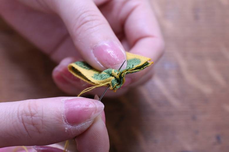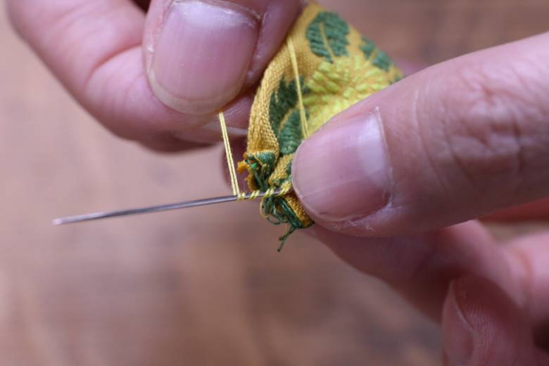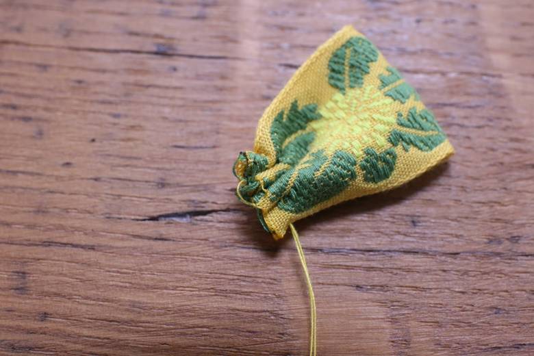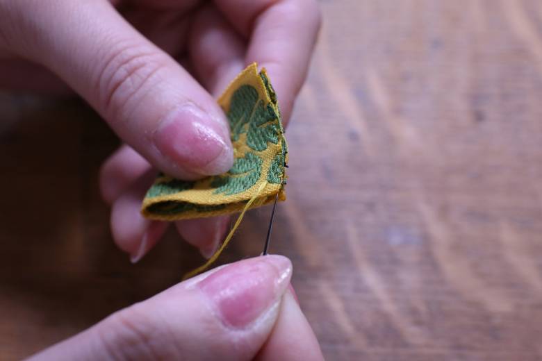 端の内側からスタートして、巾着のようにチクチクします。