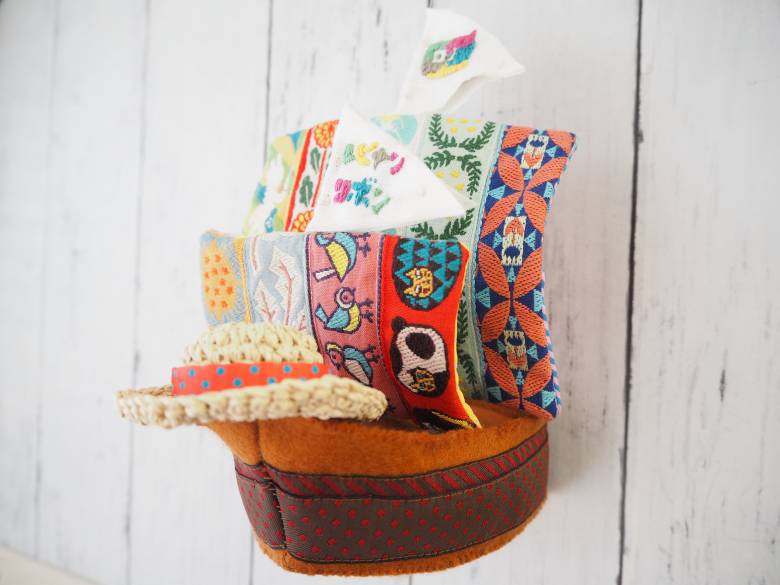 「布博in横浜」のウエルカムアイコンのお題は「船」。レピヤンリボンはチロルリボンいっぱいの海賊船でお迎えいたします。