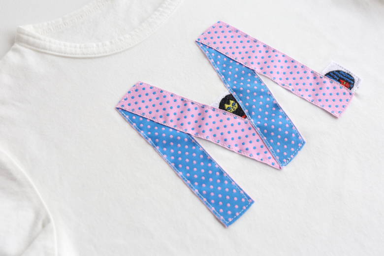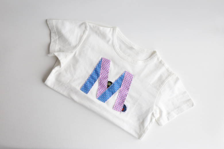 第1回レピヤンリボンアワード アイデア賞 1作品目は、リバーシブルリボンで文字を書いた、イニシャルTシャツです🎉