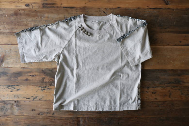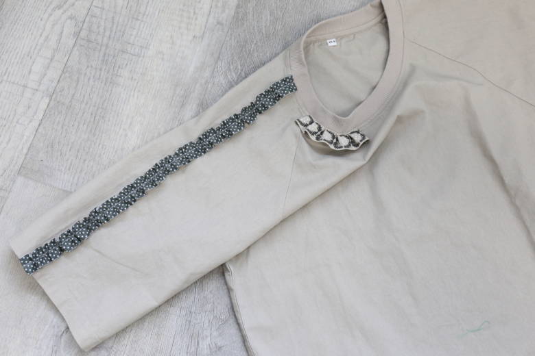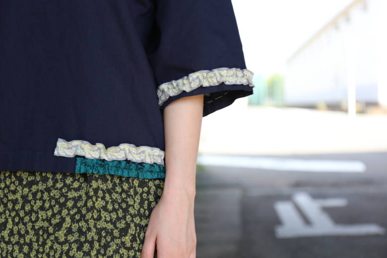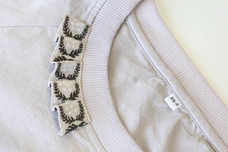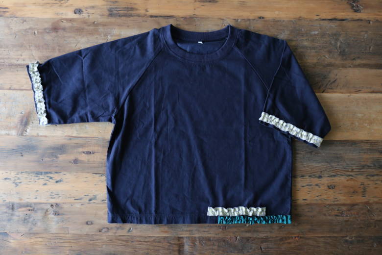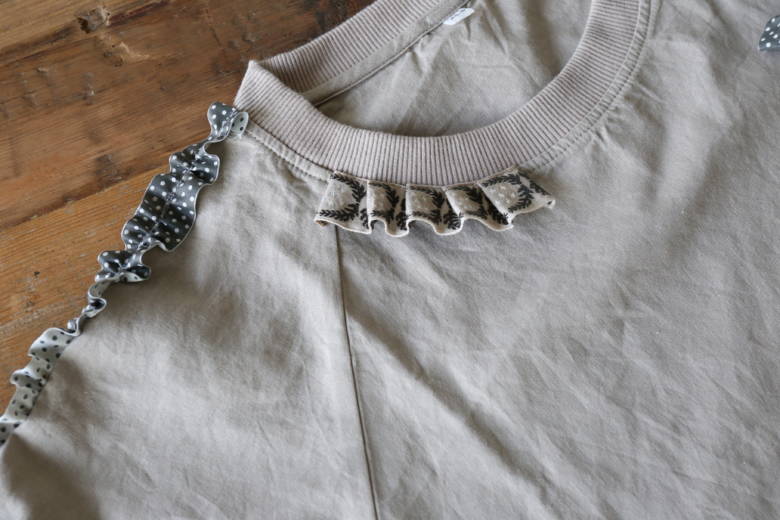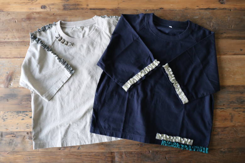 みなさんも、お好きなシャツやTシャツにお好きなリボンでお好きな場所にクシュクシュリボンを付けて、あなただけのオリジナルの洋服を作ってみて下さいね。