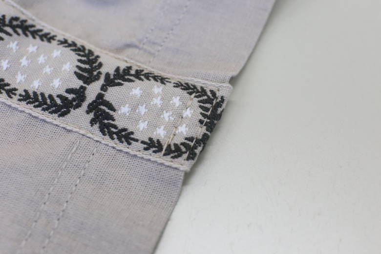 材料・・・洋服、お好きなチロルリボンとリバーシブルリボン(リボンは縫い付ける長さの1.5倍の長さが必要です。)