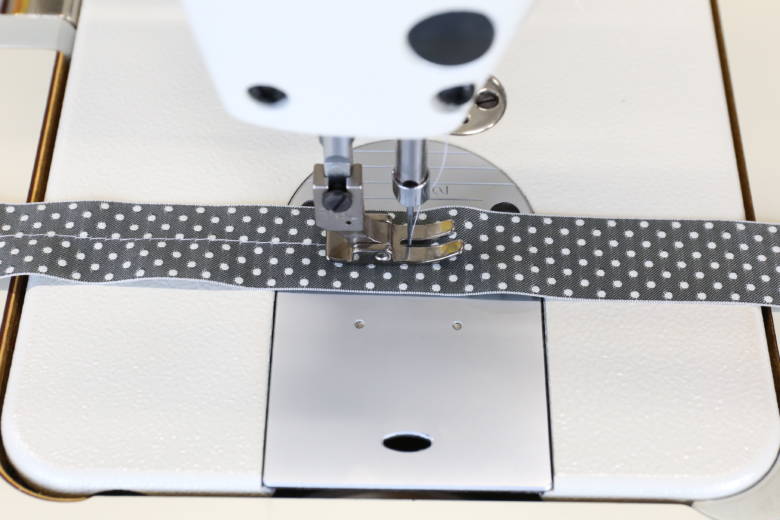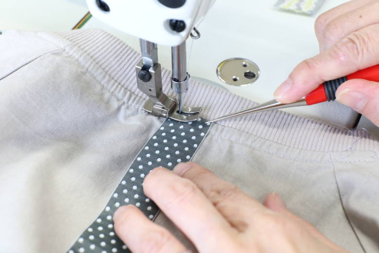 ※写真とは反対側から縫って頂いても構いません。(ミシンの本体側に洋服が来てしまいますが、プリーツの向きに合わせて縫製できます)