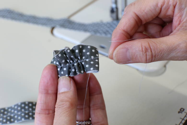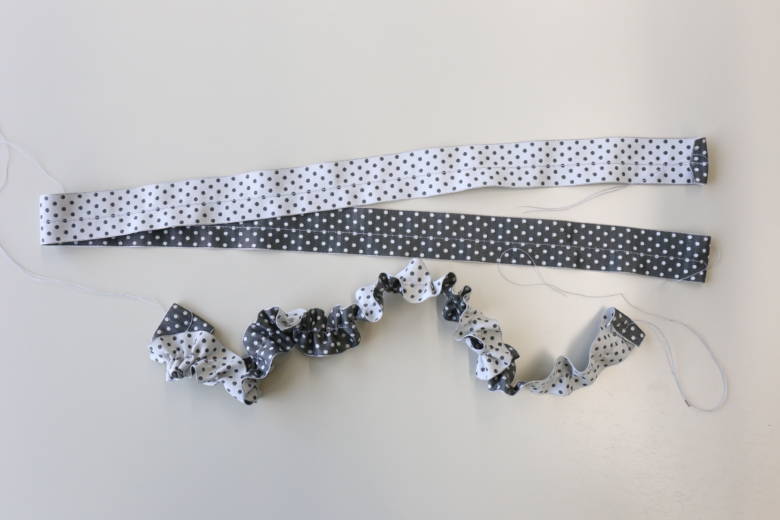 そして、クシュクシュ作り。ミシン目は4~5の最大値にしてください。