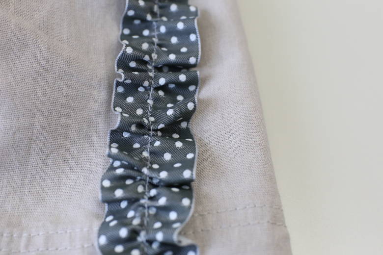 縫製位置は、クシュクシュを作るために縫ったミシン目の真横を縫えばOKです。