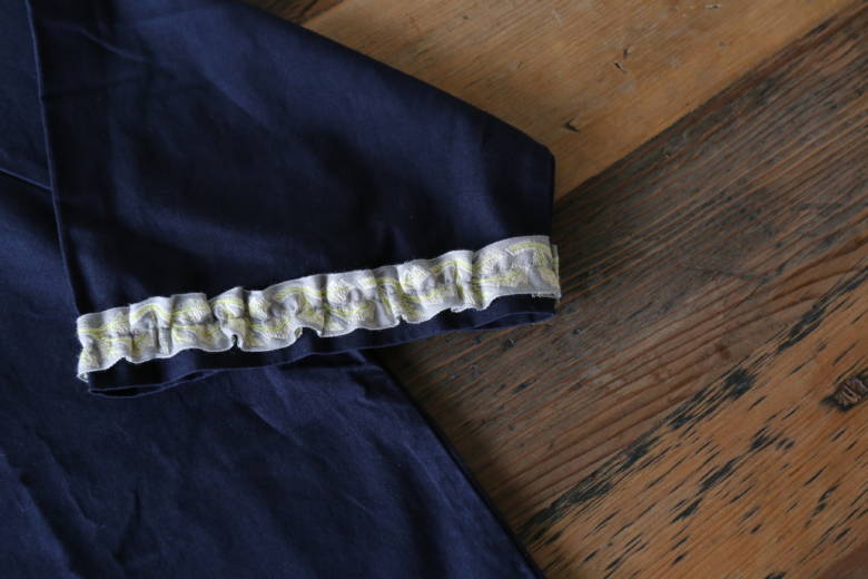 ※実際この段階では、縫製したい袖の長さより少し短いくらいの長さにしておき、この後、仮止めをしながら調整していきましょう。
