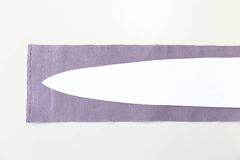 ターバンの先端は先から15㎝位が徐々に細くなるように印を付けておきます。