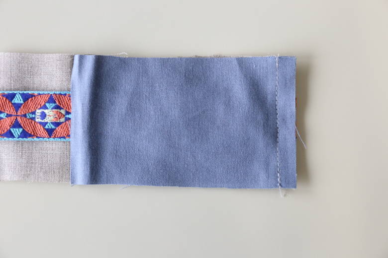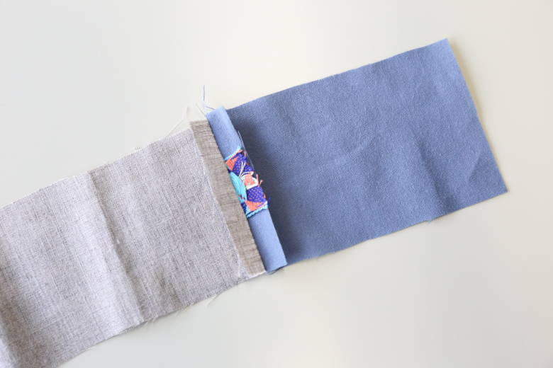 更にⒸ生地を中表に置き、1㎝の縫い代を付けてミシンで縫います。