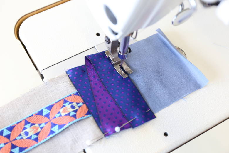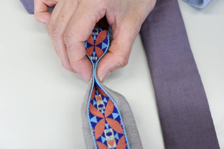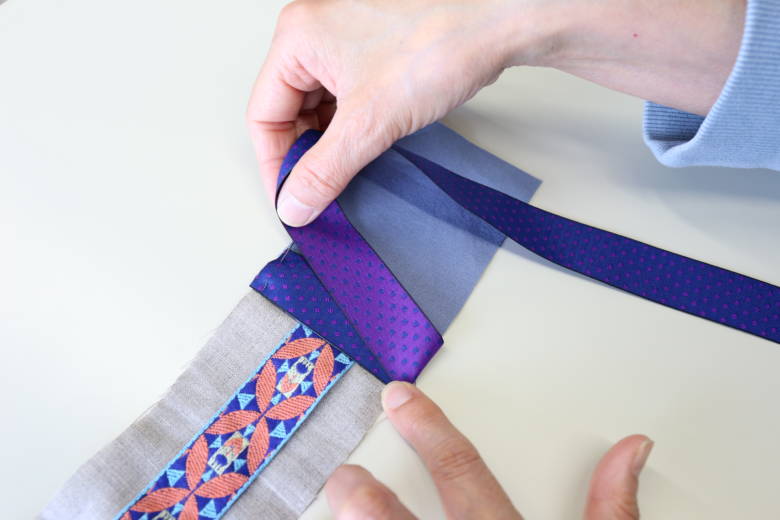 リバーシブルリボンの端はすべてミシンで縫い留めます。