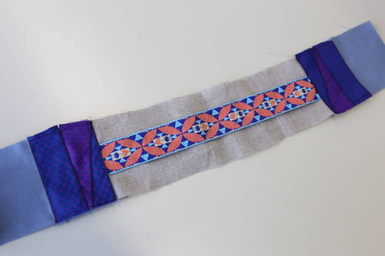 まつり縫いが終わったら、中心のチロルリボンが付いた部分を2つに折りタックを作ります。