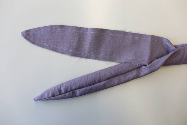 ターバンの先から20㎝位のところに10㎝の印を付けておきます。(ひっくり返す為の縫わない部分)