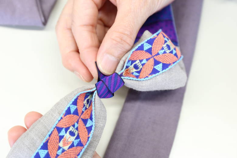 タック部分にリバーシブルリボン12㎜を2回巻きます。