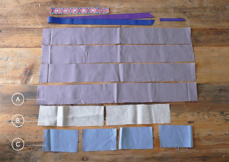 ターバンの裏面はリボンは付けず、ⒶⒷⒸの生地を縫い合わせ繋げます。