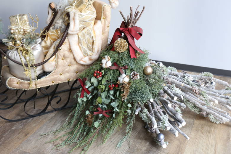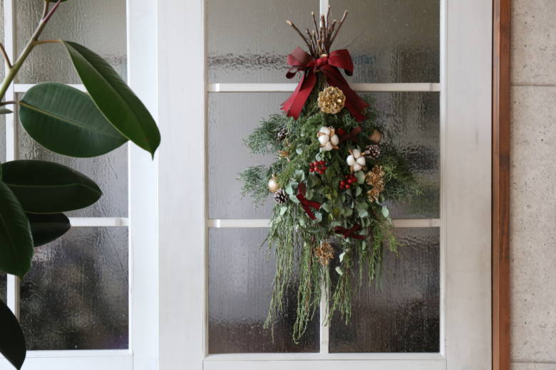 そこで今回はレピヤンリボンを使って、クリスマススワッグを作ってみました(*^▽^*)